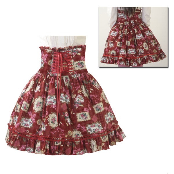 Sara Framed Roses High Waist Skirt (Red) (L260)