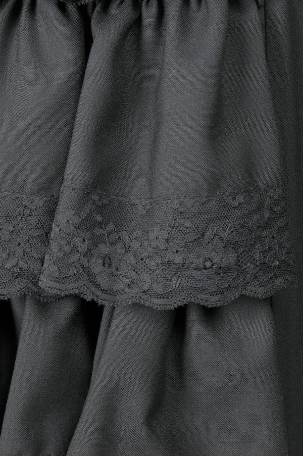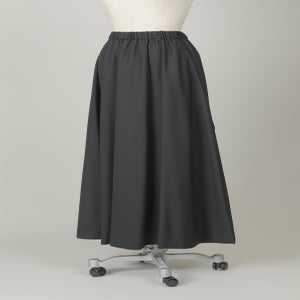 バックにフリルをあしらったロングスカートはフレアーでエレガント。ウエストはゴムになっています。