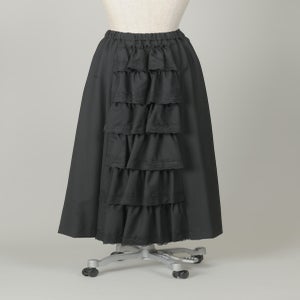 [Brand comment] The long skirt has a flared, elegant design with a ruffled back and an elastic waistband.