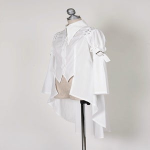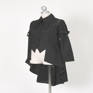 おしりまですっぽりかくれるタイプ。前見の裾のラインが新鮮。王子になれる1枚。
