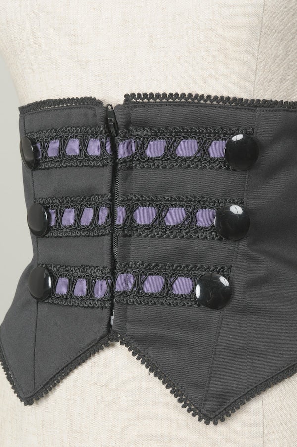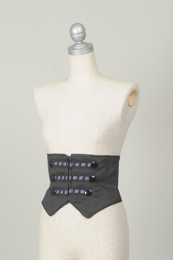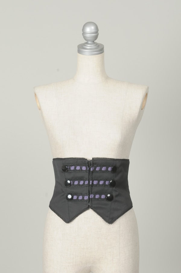 ベルト付きのコルセットはパープルの配色が素敵。後ろのバックルベルトはで調整可能。