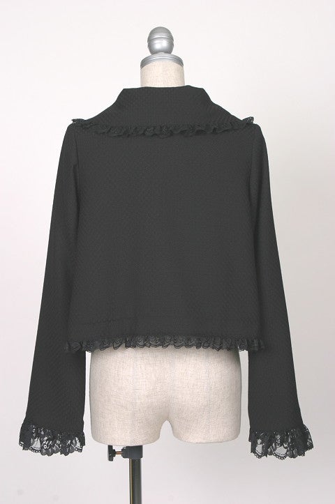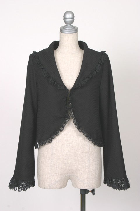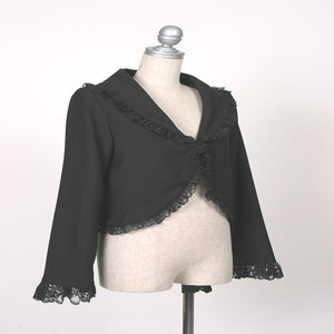 A jacket that can be worn as a set with a lace-hem dress . A design that is easy to wear and not too stiff