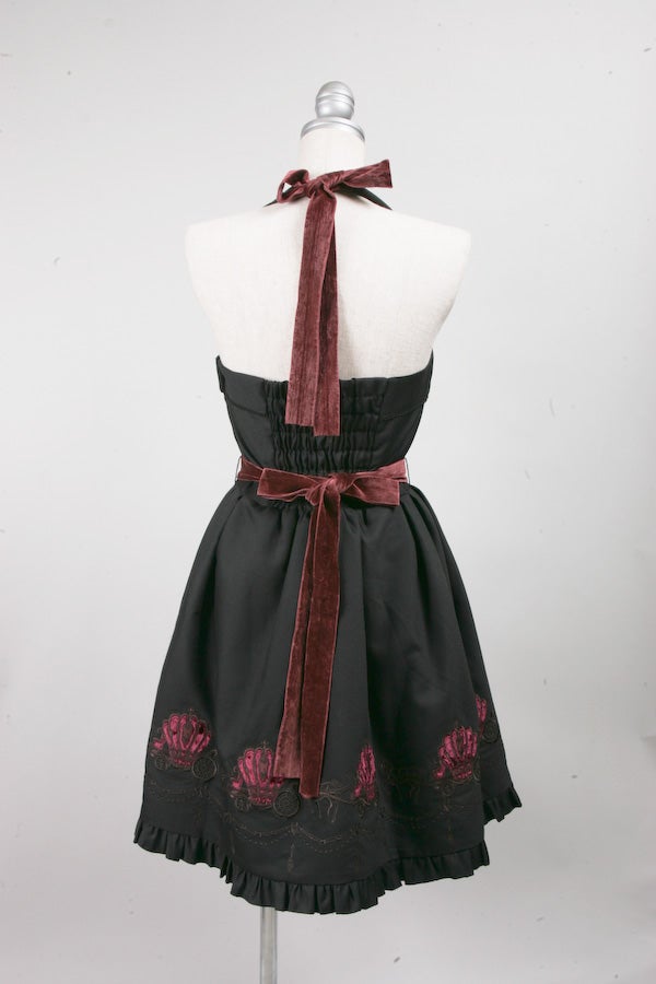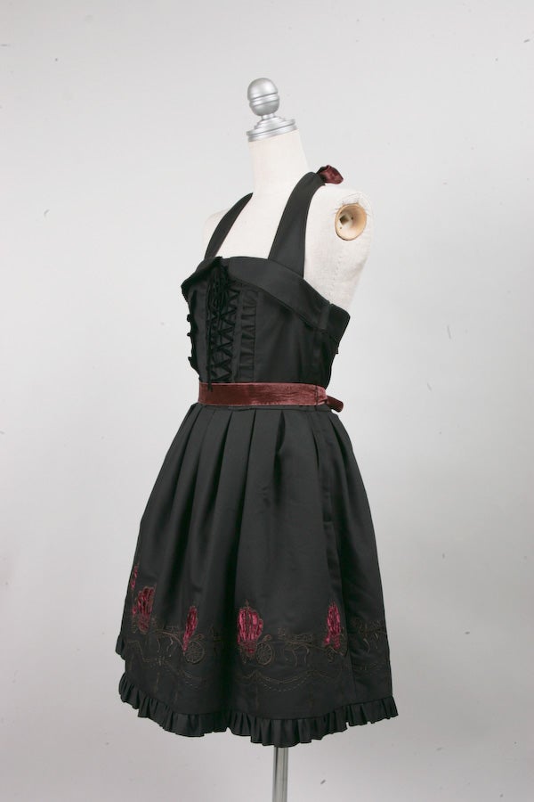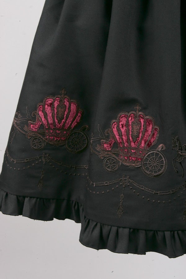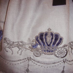 This season's theme is a medieval European style item with a story. The embroidery of a royal carriage with a crown is gorgeous. The velvet ribbon forms a halter.