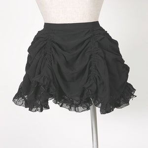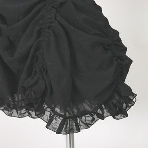 裾のリボンを調節するとシャーリングの雰囲気が変わってみえます。何重にもかさなるフリルが贅沢。