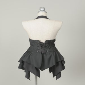 背中の編み上げで調整できます。フレアーが身体のラインを綺麗に見せてくれます。