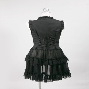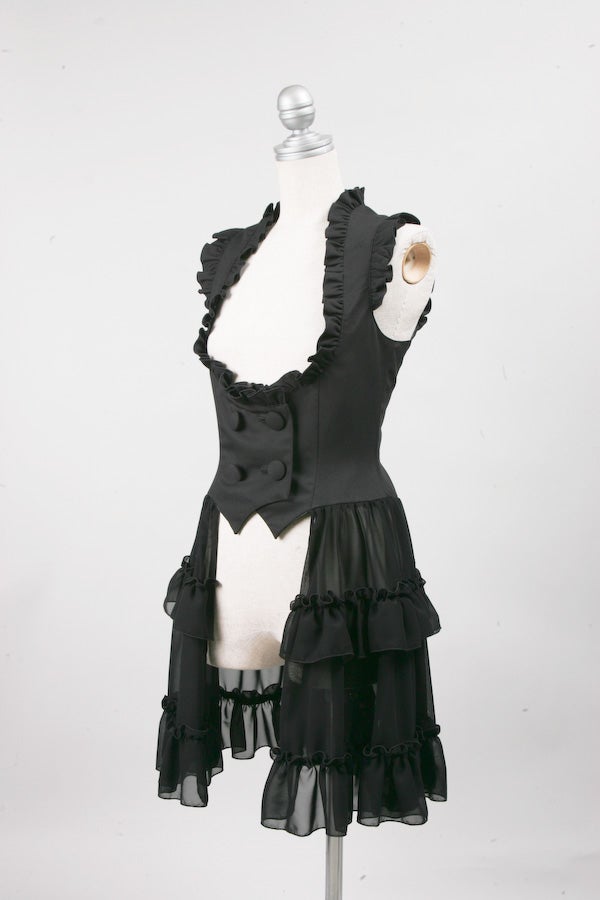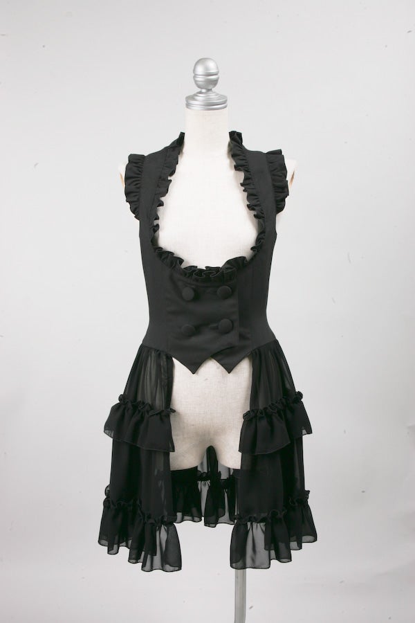This is a new addition to last year's popular design. The unique design, which combines a vest and a cover dress, is appealing. The back is laced up so you can adjust the fit.