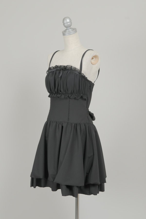 A cute dress with a doll-like balloon design. It's a cami style so you can wear it all year round. The straps are adjustable
