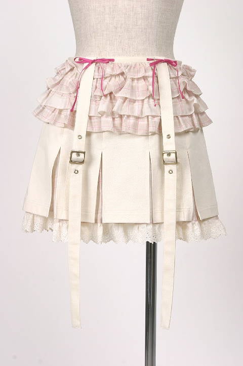 ベルト付きチェックフリルスカート