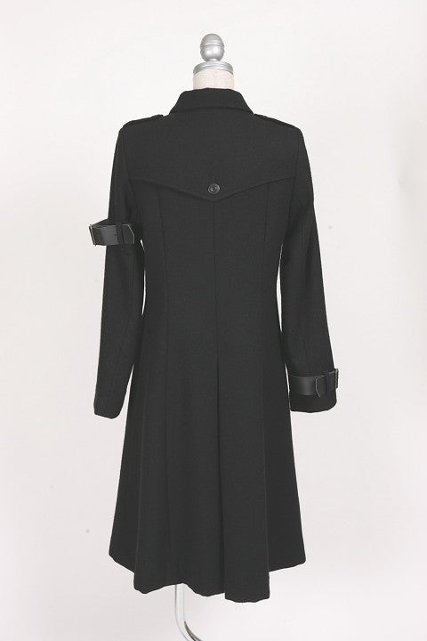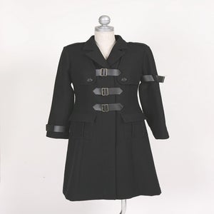 This coat has a cool design with belts in the center and on the sleeves. It's a long-lasting piece.
