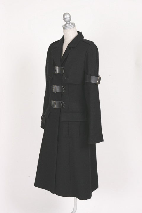 センターと袖のベルトがかっこいいコート。長く使えるタイプです。