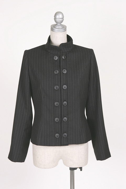スタンドカラーにボタンが並んで個性的なデザインが魅力。715320(0509SK3)のスカートとセットアップになります。