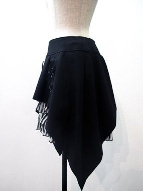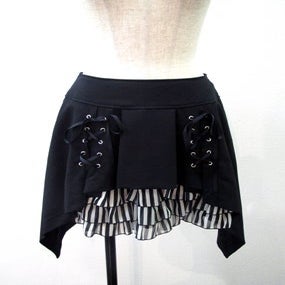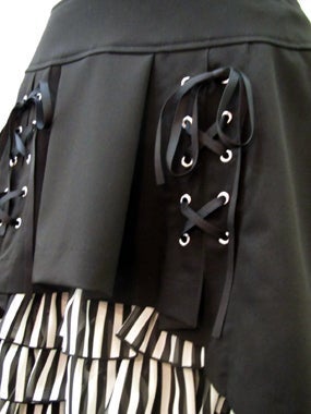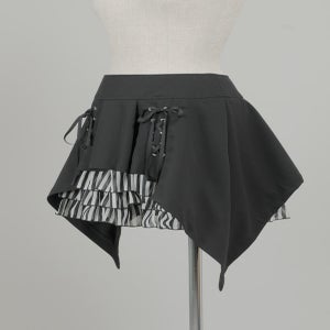 The lace-up and irregular lines are beautiful, and the striped frills add an accent.
