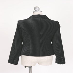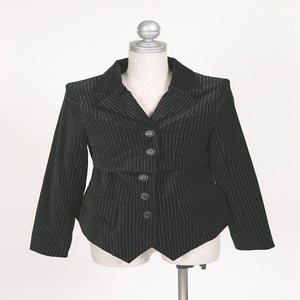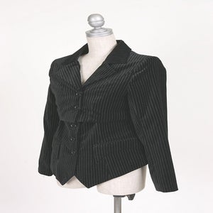 2枚重ね風のユニークなデザインが目を引くジャケット。今年注目の別珍素材