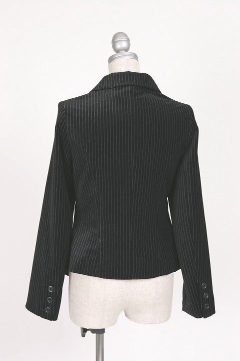 This jacket features a unique, two-layered design that catches the eye. Made from velvet, a popular material this year