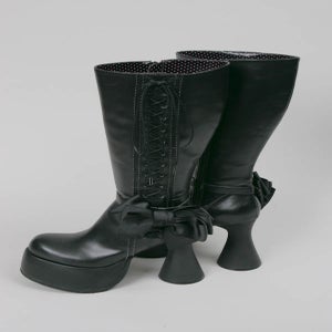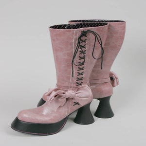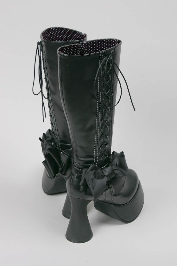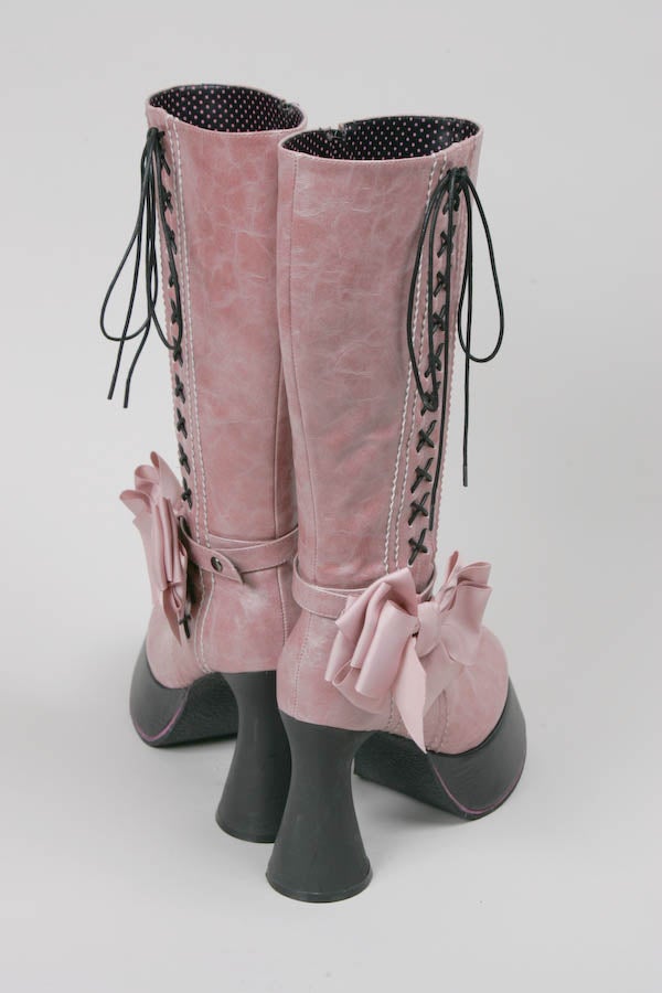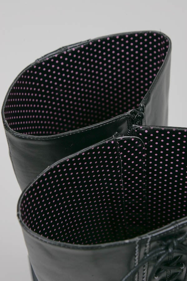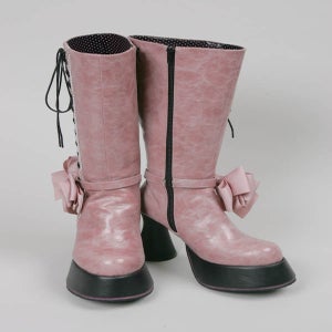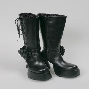 リボン付きレースアップロングブーツ