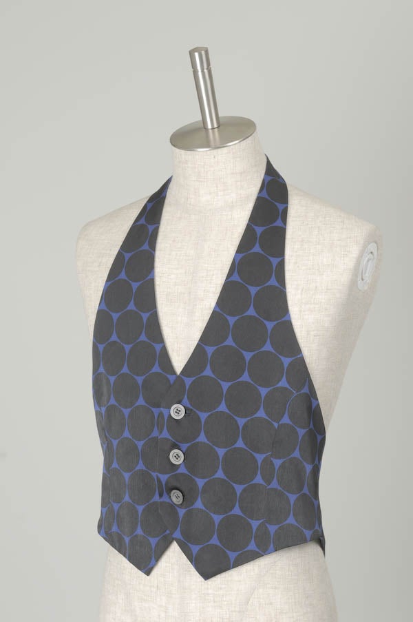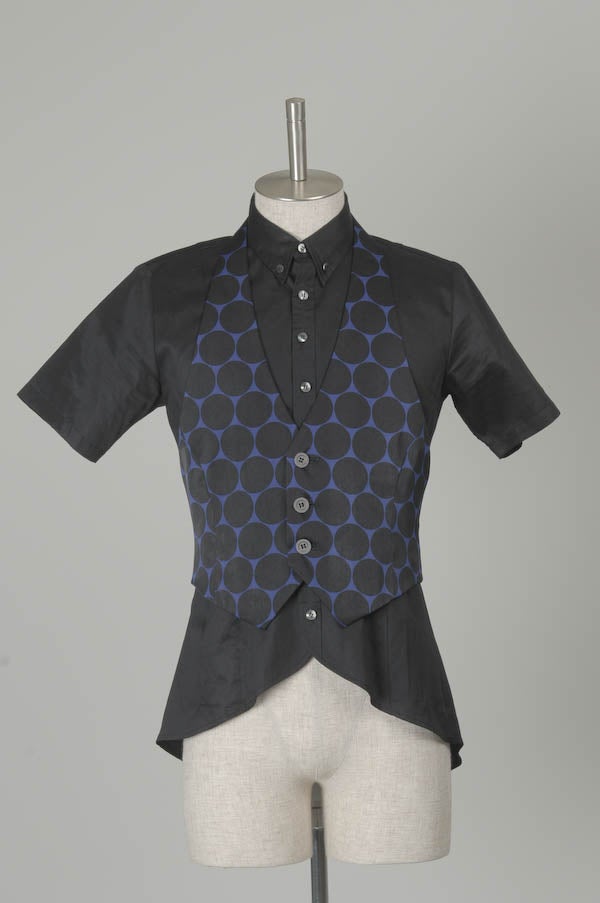 This blouse comes with a large polka dot vest. Of course, you can wear them separately. The vest also looks great paired with a cut-and-sew top for a more casual look.