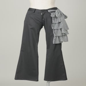 These stretch pants feature eye-catching striped chiffon. The classic bootcut creates a leg-lengthening effect. The chiffon is removable.