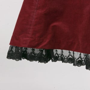 ウエストから下に広がったフレアー感が女性らしい。裾には黒レースで可愛さをプラス。