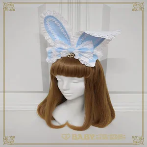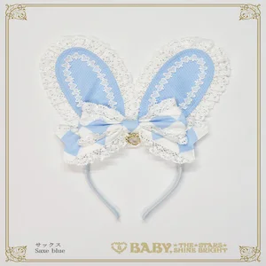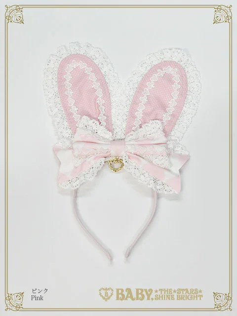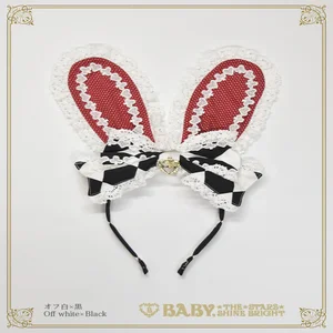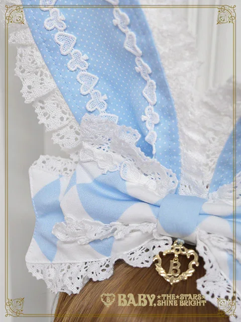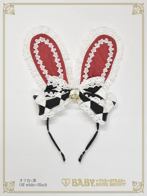 The combination of polka dot bunny ears decorated with playing card patterned chemical lace and diamond pattern ribbon is super cute♡ on this ribbon headband