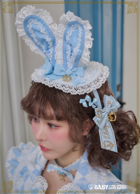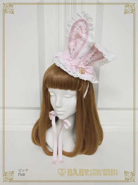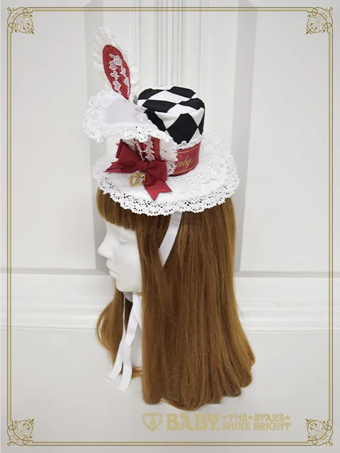 This mini hat with polka dot bunny ears and playing card patterned chemical lace is perfect for both girly and prince styles♪