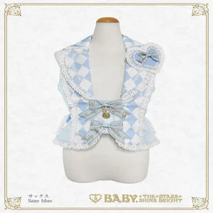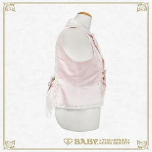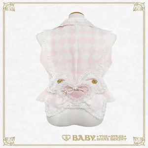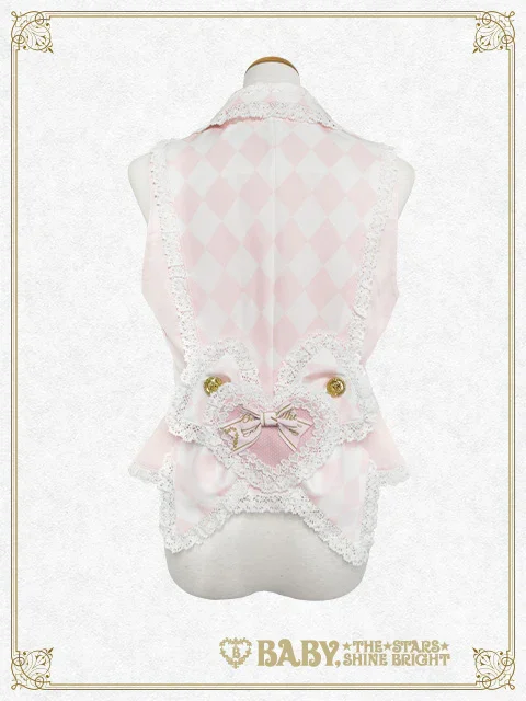 This eye-catching vest features diamond pattern fabric partially used on the collar and front and back; and other highlights include a removable heart motif, a large ribbon on the back, and Baby's original logo grosgrain ribbon!