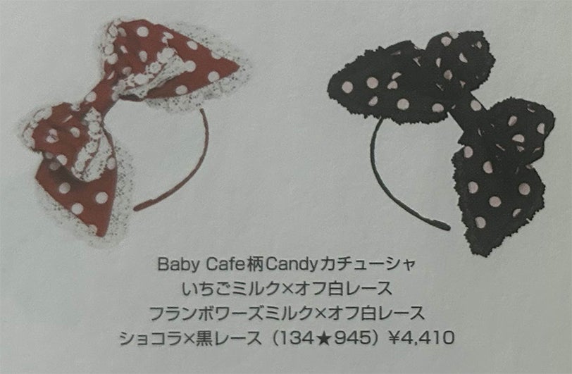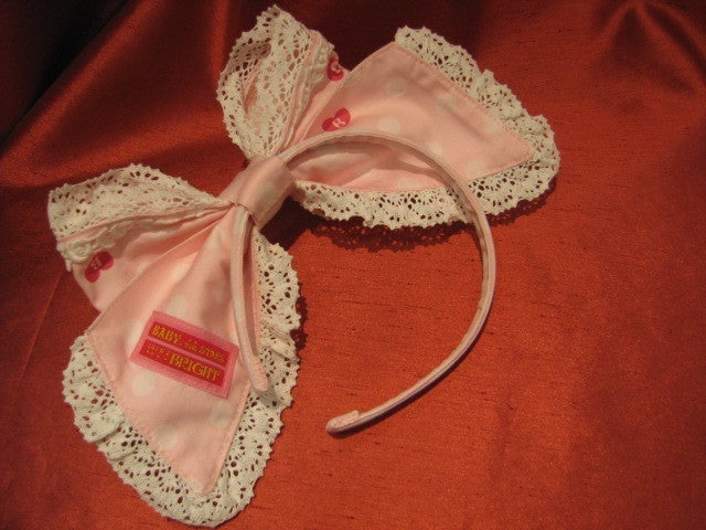[Brand comment] This headband has a sweet design with large candy-like dots. The standing ribbon makes this a sweet and cute hair accessory.