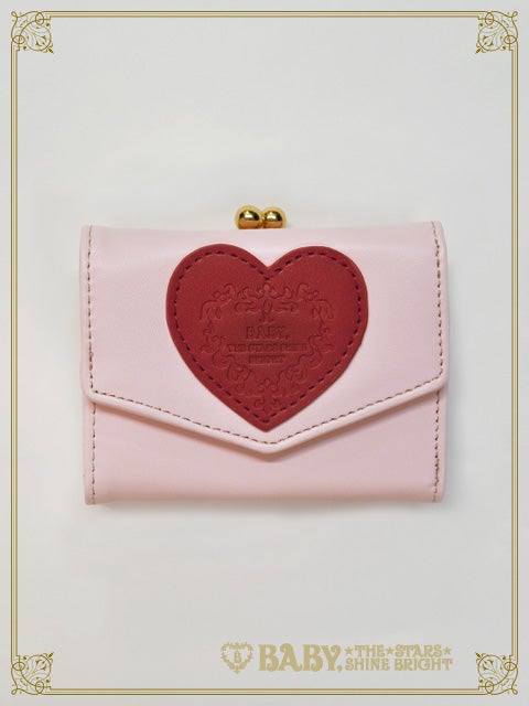 Introducing a cute tri-fold wallet with a heart motif and princess drop embossed inside♡