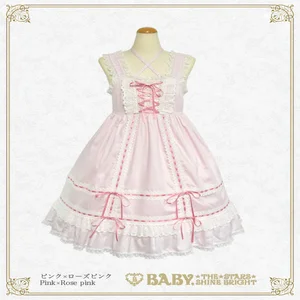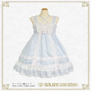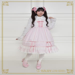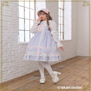 This classic Baby jumperskirt, with its adorable color scheme of base fabric, lace, and ribbons, is now available in cotton satin♡
