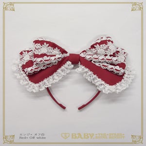 薔薇側のケミカルレースをトップとサイドにたっぷりとあしらった、お上品なバーバリー素材のおリボンカチューシャです♪