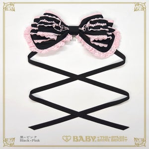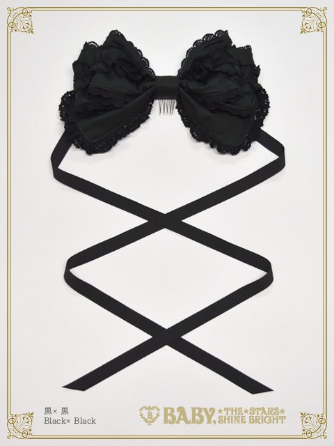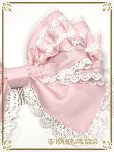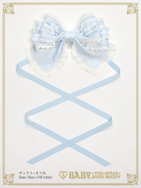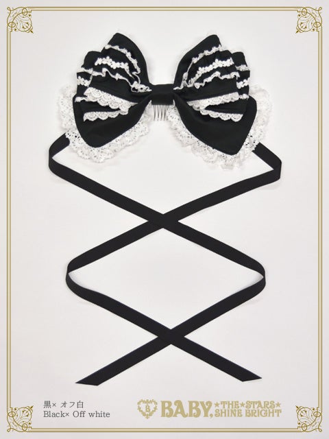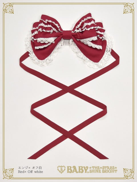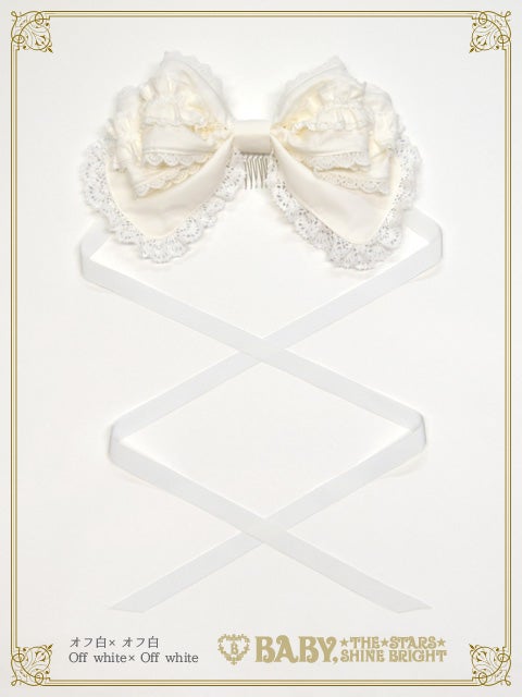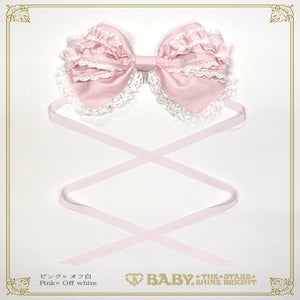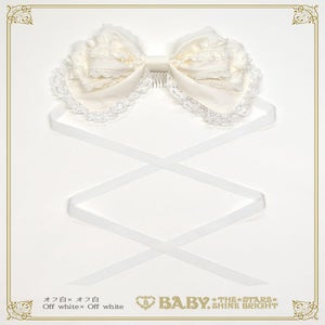 This cute and gorgeous ribbon-shaped headdress features gathered torchon lace in the center of the ribbon and flower motif chemical lace♪