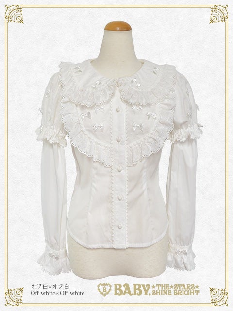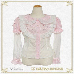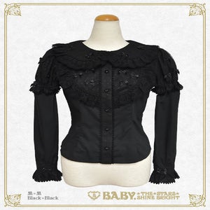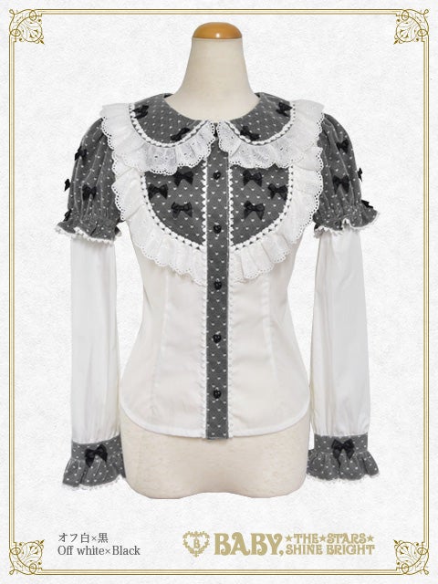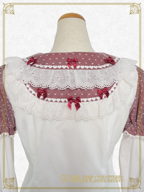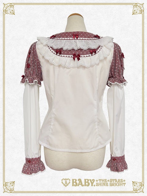 This blouse has removable lower sleeves so it can be worn all year round; and the collar, yoke, placket and sleeves are made from heart tulle♪