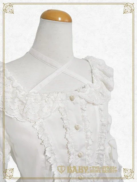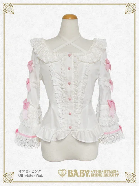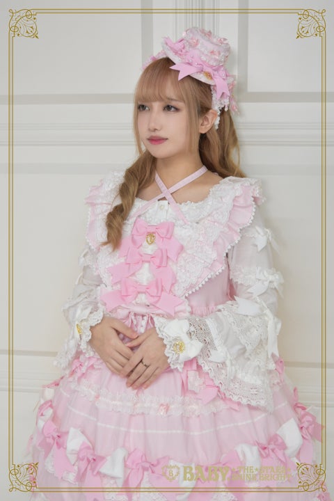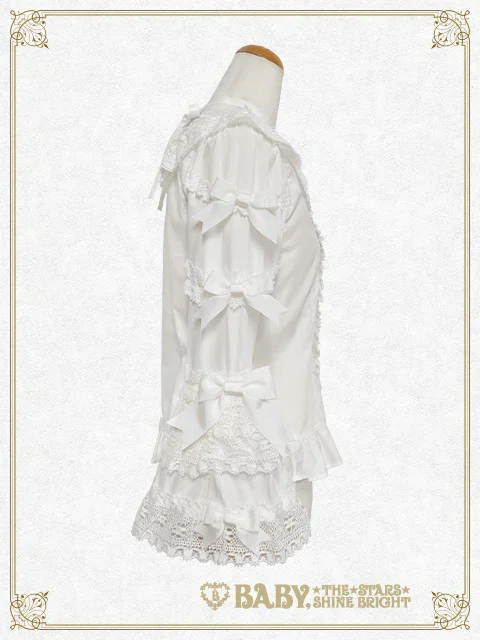 The clean square collar design, many ribbons lined up on the arms, and the princess sleeves with plentiful frills are perfect for a gorgeous look♡