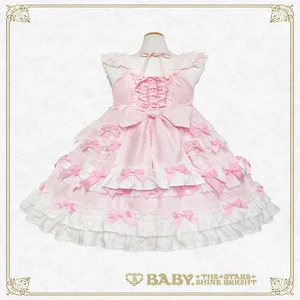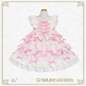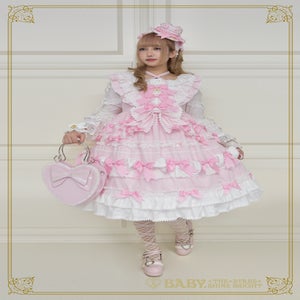The ribbons in various colors are all over the dress, the design is topped with whipped cream-like fabric, the generous lace on the bodice and the frills on the skirt hem are adorable; and the partially shirred back design and adjustable shoulder straps are also subtle details♪