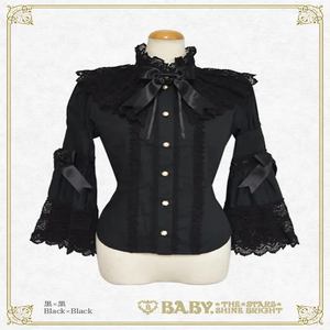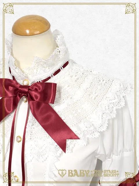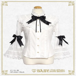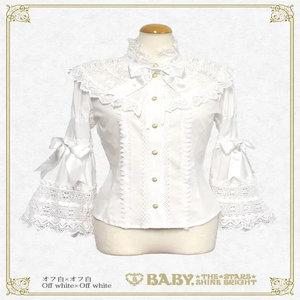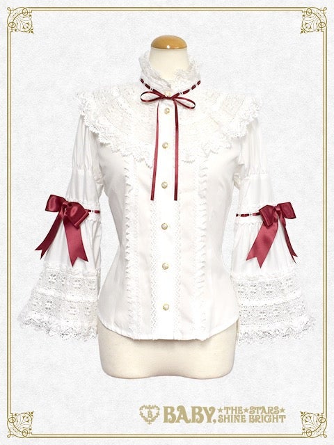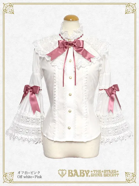 This gorgeous and elegant blouse features generous torchon lace around the collar and sleeves, and the princess sleeves that flare out from under the soft puff sleeves are beautiful. The ribbon design makes this a special and adorable piece♪