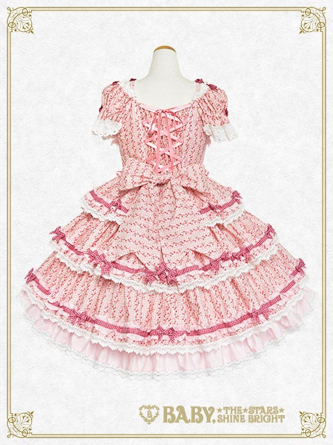 In addition to the gorgeous layered frills and lace, gingham ribbons and floral lace are used throughout; creating a cute and dainty impression♪