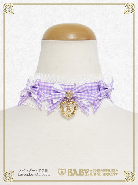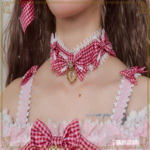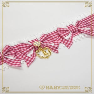 This adorable choker is decorated with round gingham ribbons♡