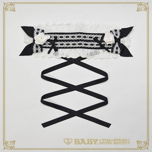 -black x white lace x black ribbon x white rose