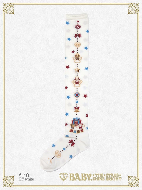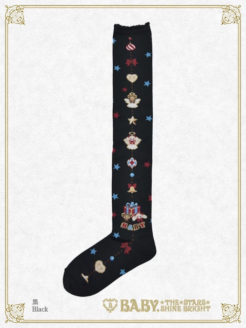 天使姿のくみゃちゃんとオーナメントモチーフが可愛らしいオーバーニーソックスです♡