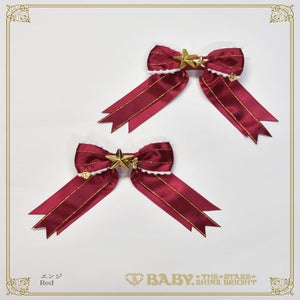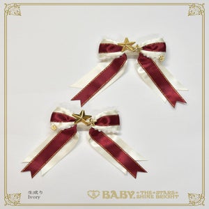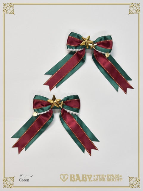 The star button and crimson/gold glitter ribbon make it sparkle - A pair of clips that are full of Christmas vibes♪