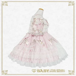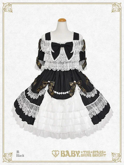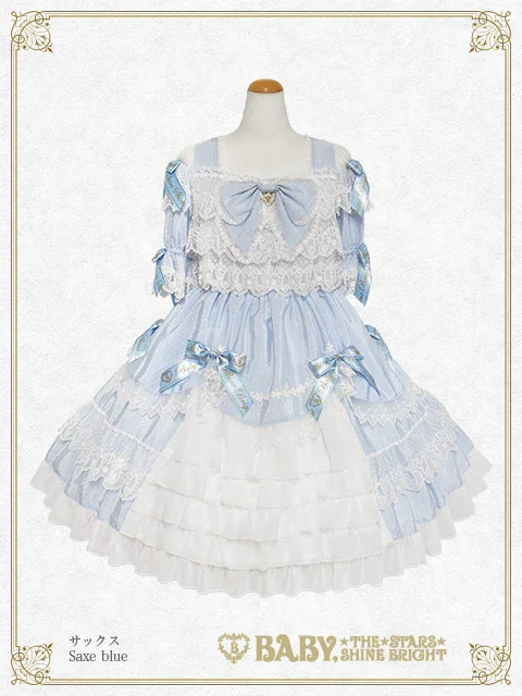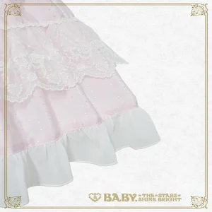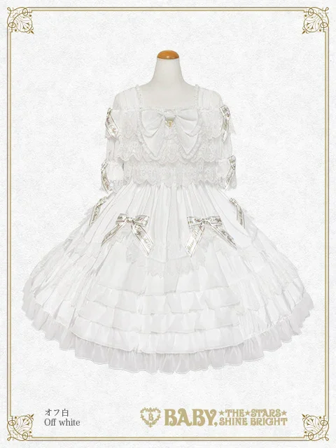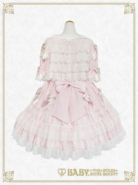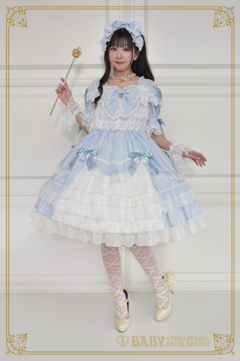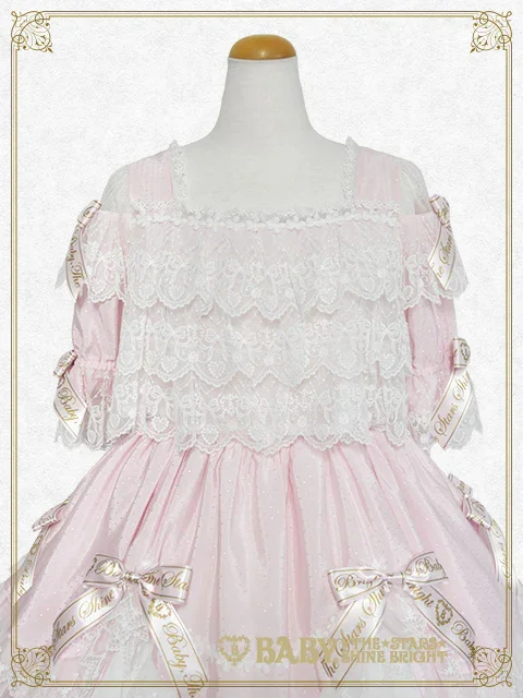 This dress is made of glittering dot dobby fabric with layers of delicate lace, accented with an original Baby logo ribbon♪