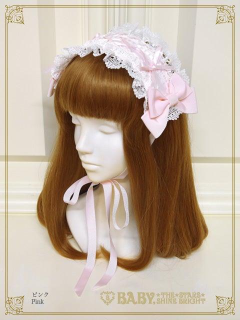 This gorgeous classic Baby headdress features crossed ribbons and ribbon-threading lace as its highlights♪