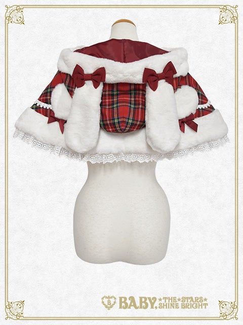 This cape is fluffy and decorated with heart motifs and pompoms around the face and hem of the hood, and the hood has furry bunny ears; making it a cute piece that will instantly turn you into a bunny♡