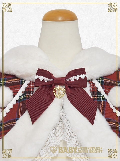 -red x white faux fur x red ribbon x white pompom tape x white lace