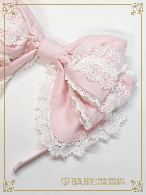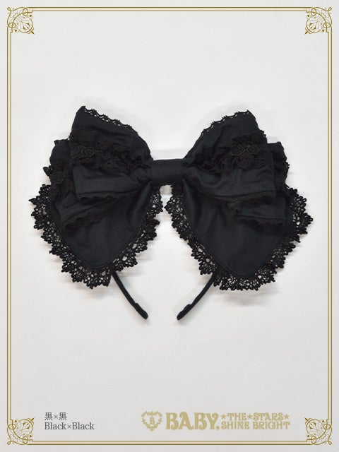 トーションレースにバラのケミカルレースをあしらったリボンカチューシャです。