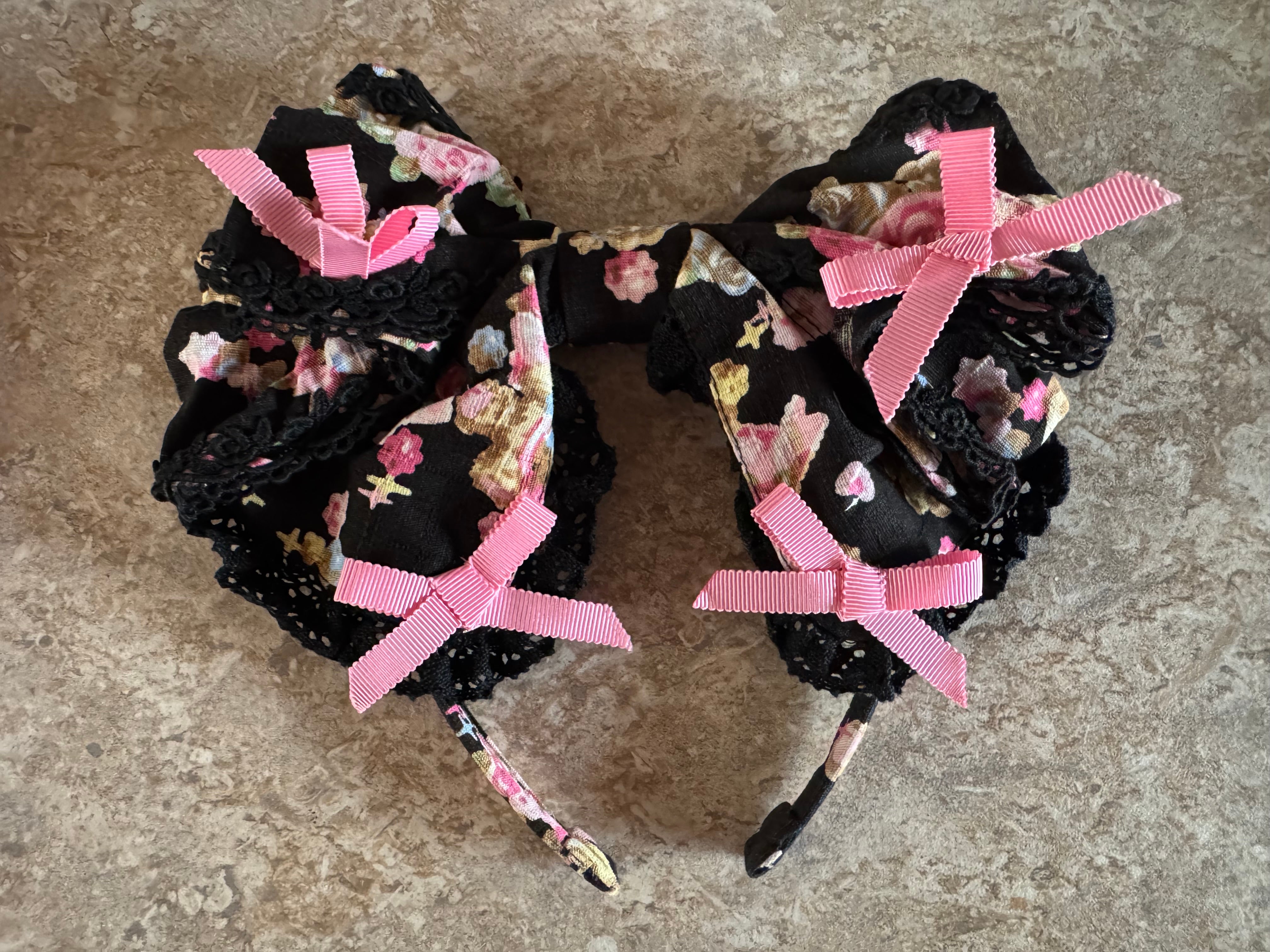 ちび猫ブーケ柄リボンカチューシャ
