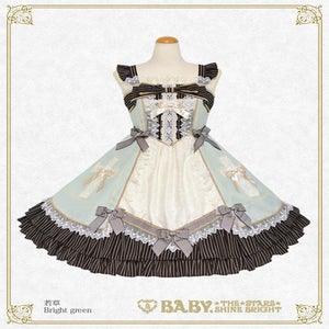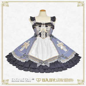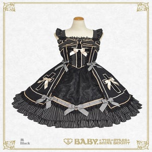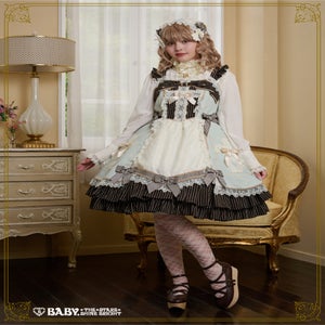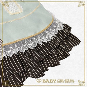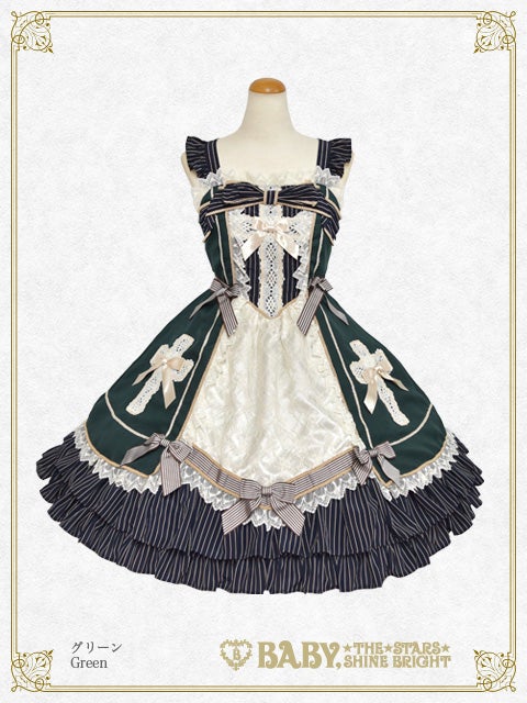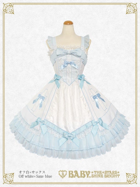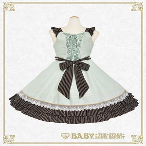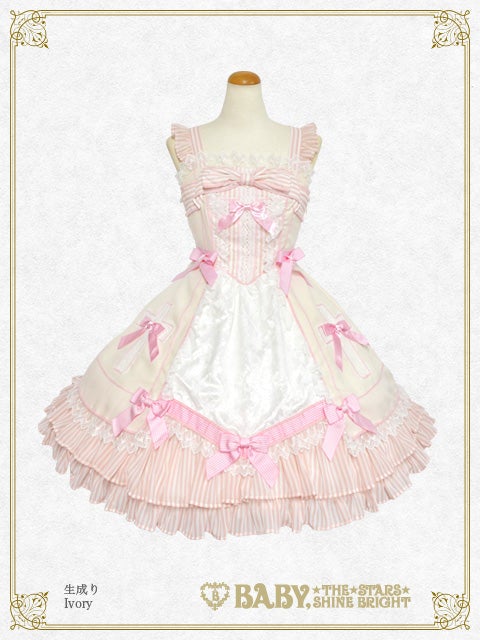 ストライプ地フリルやレース地にたくさんのリボンとギャザーレースをあしらった、BABY定番の華やかなジャンパースカートは生地の組み合わせにこだわりと遊び心を忍ばせたデザインです♡