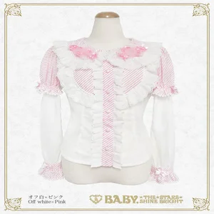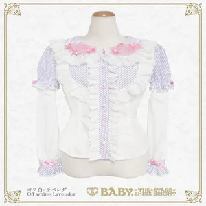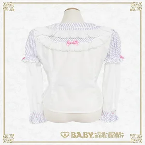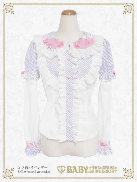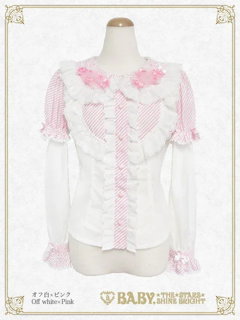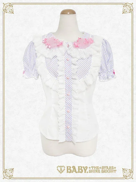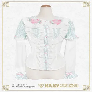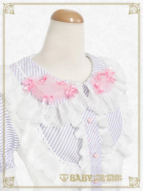 This super cute♡ blouse features candy-shaped tulle decorations on the collar and can be worn in two ways: with short or long sleeves.