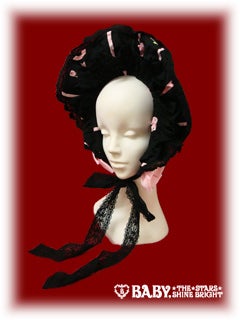 - Bitter Chocolate (black) x black lace x pink ribbon