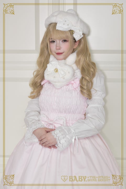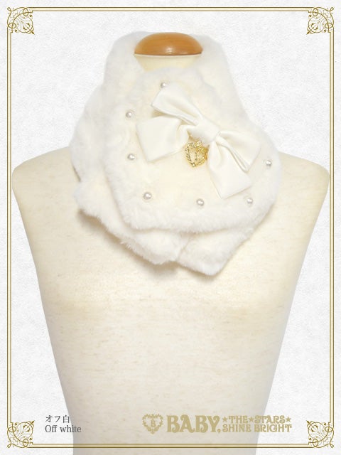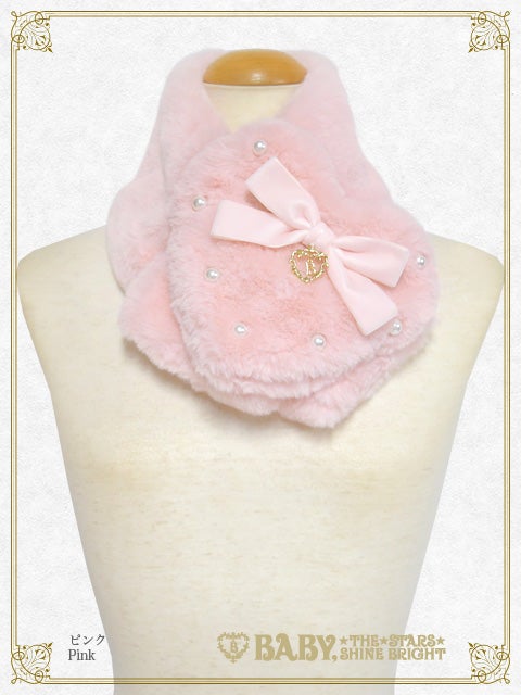 ふわふわのフェイクファー素材が暖かな、大きなハートモチーフがポイントのマフラーはパールやプリンセスドロップがあしらわれたとってもCuteなデザインです♡