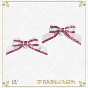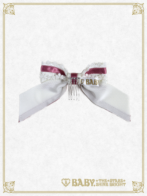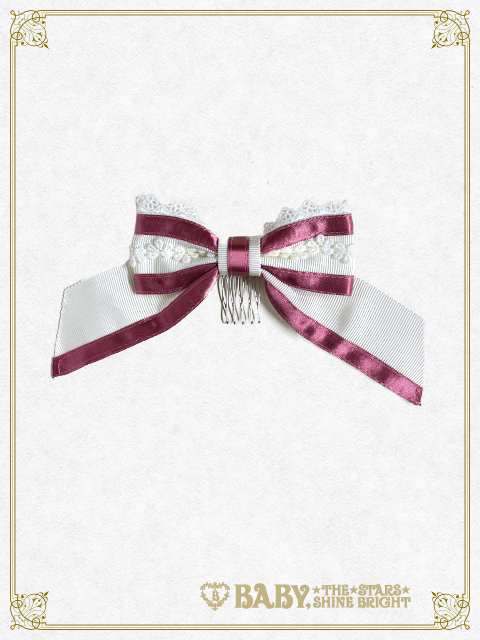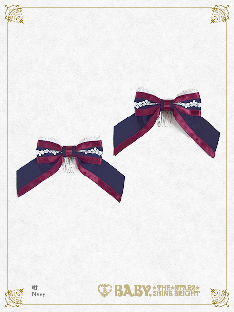 グログランの両フチにサテンリボンを叩き、真ん中にお花のケミカルレースをあしらったニコ組コームです。